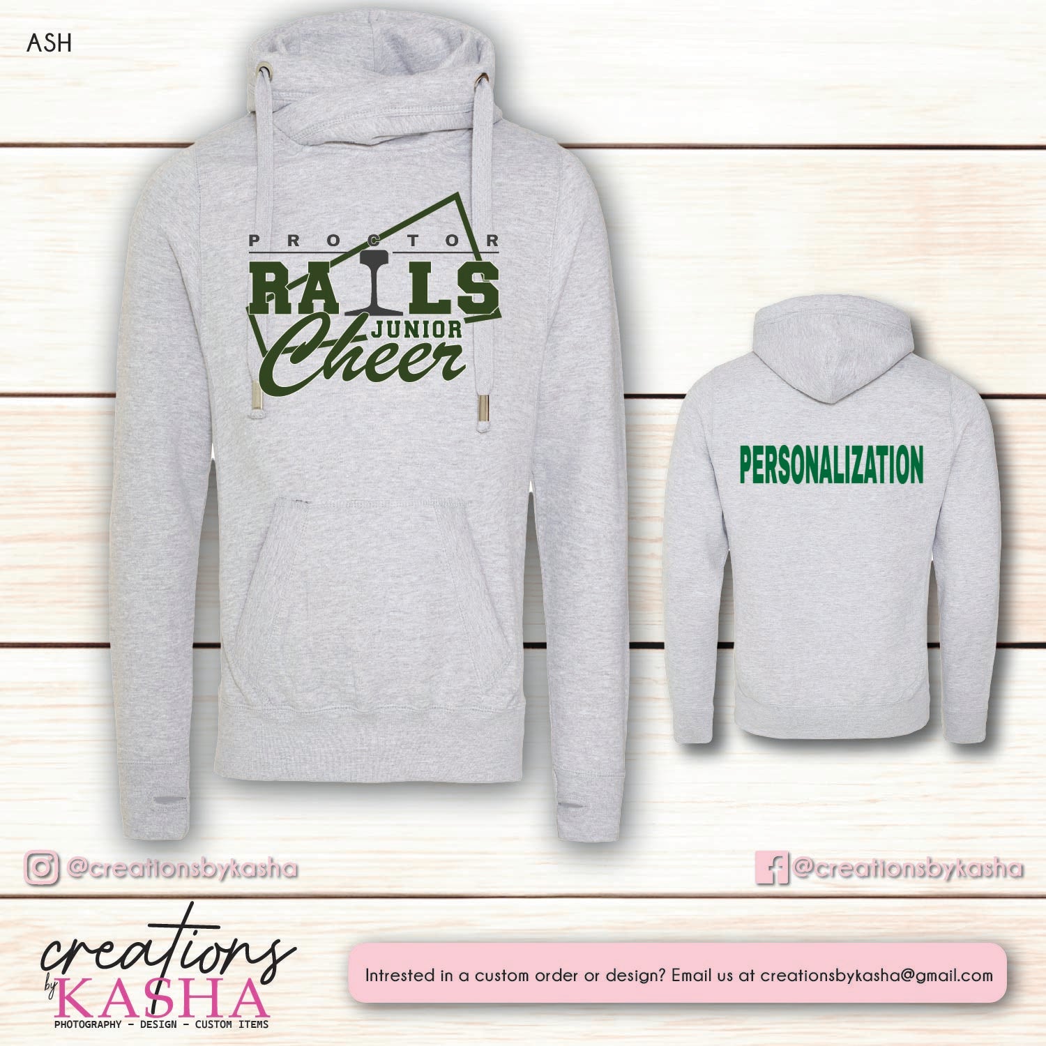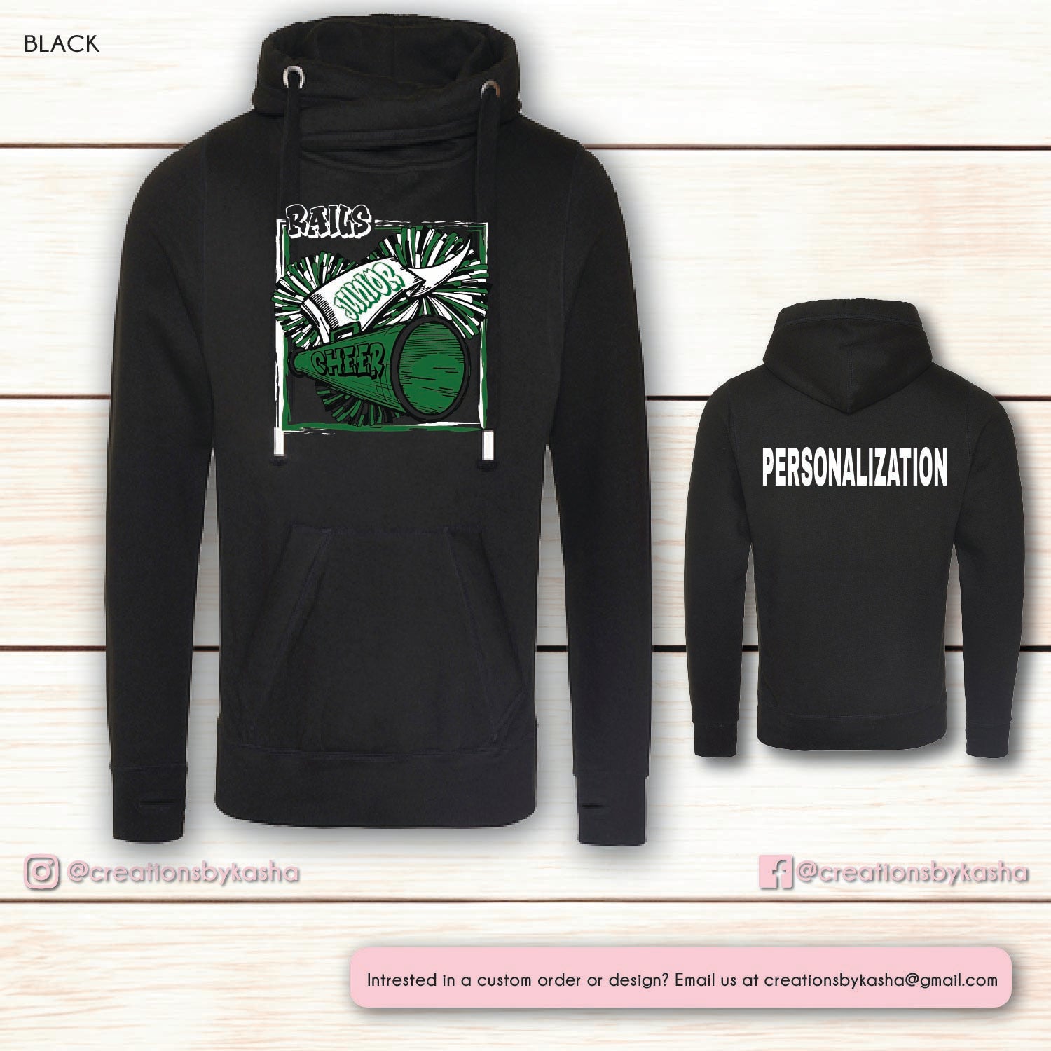Stay warm and comfortable with our Jr Cheer Cowl Sweater. With a super cozy cowl hood and choice of three Junior cheer designs, you'll stay stylish and comfortable. True to size and longer length to keep you covered. Plus, personalize it for a unique touch. If you don't want personalization, just put none.